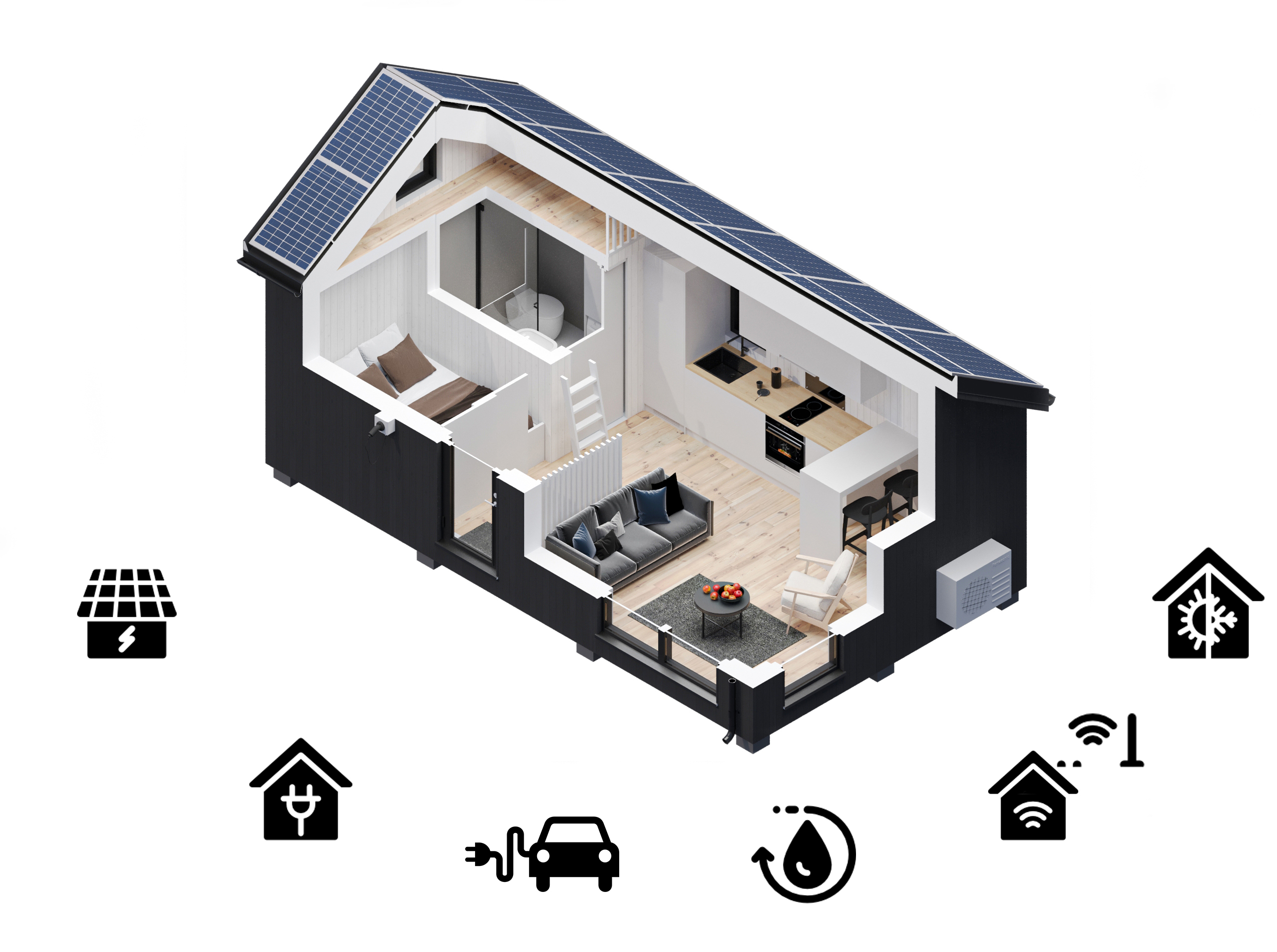 Bo billigt i vårt nyproducerat attefallshus MED integrerade solceller, växelriktare och elcentral.
