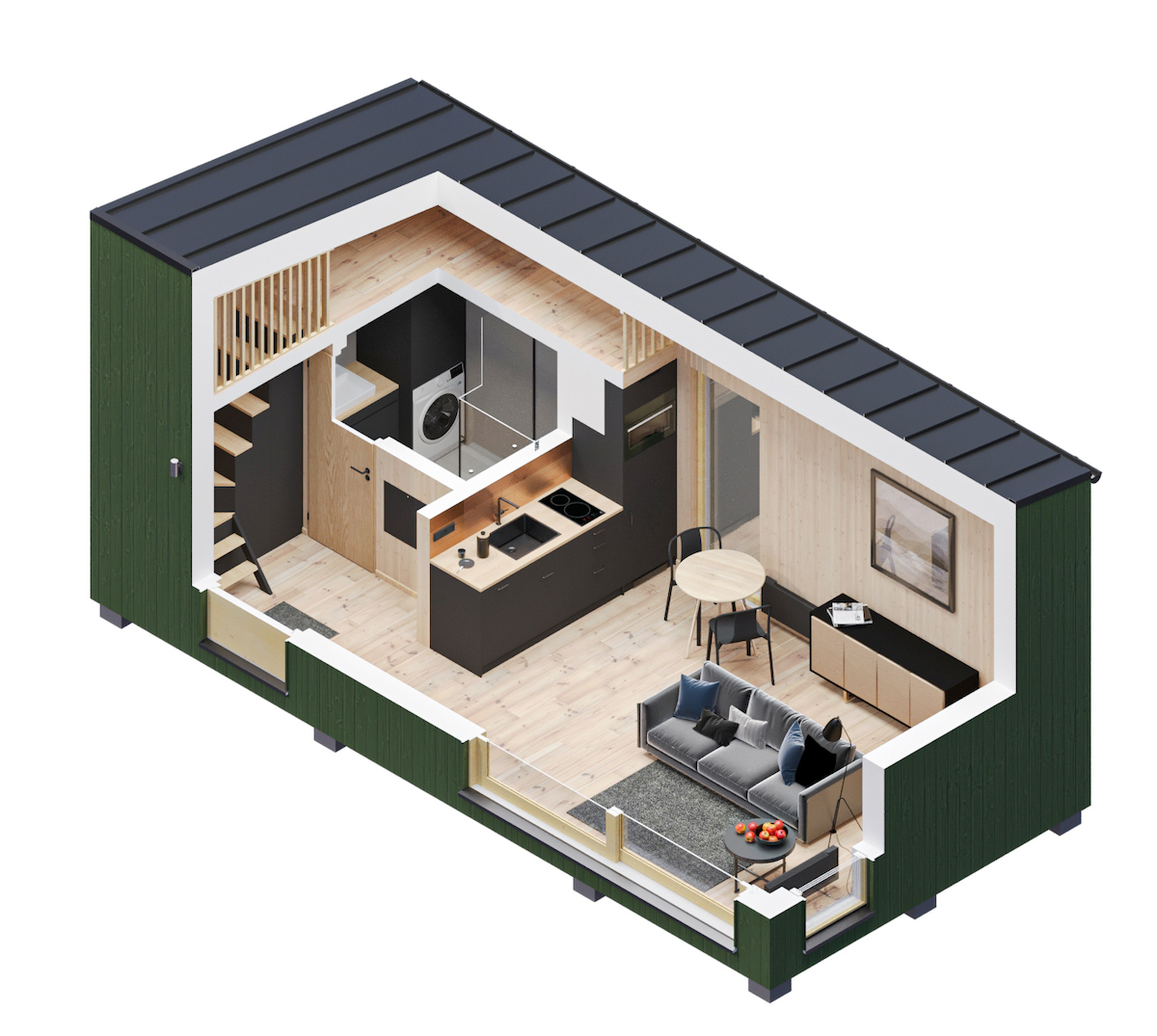 Huset kommer som ett färdigt koncept för att tillmötesgå en snabb process men självklart försöker vi tillmötesgå egna önskemål om färger, material och tillval… Populära tillval är exempelvis en stämningshöjande braskamin som kanske också får fungera som värmekälla om strömmen går, en luftvärmepump för extra komfort eller varför inte passa på att välja till solceller för en riktigt bra ekonomi och ett elöverskott som genererar inkomster. Pulpettak är särdeles fördelaktigt för just solceller och i kombination med en inkomst från uthyrning så är huset inte bara självförsörjande utan även inkomstbringande.