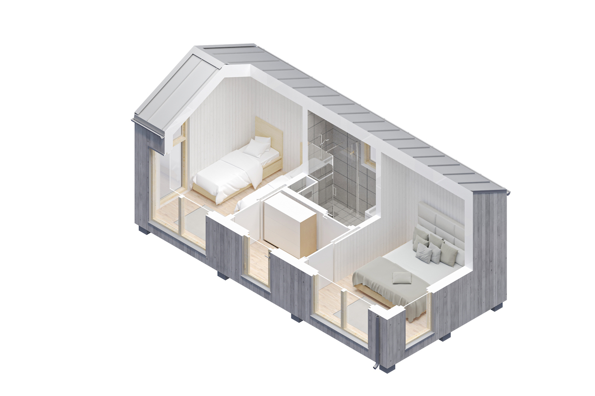 Vinga 30 har en speciell planlösning utan loft då vi istället har satsat på ett hus med högt i tak. Det här är huset för dig som behöver många sängplatser alternativt plats för kontorets skrivbord eller varför inte som hobbyrum eller ateljé?